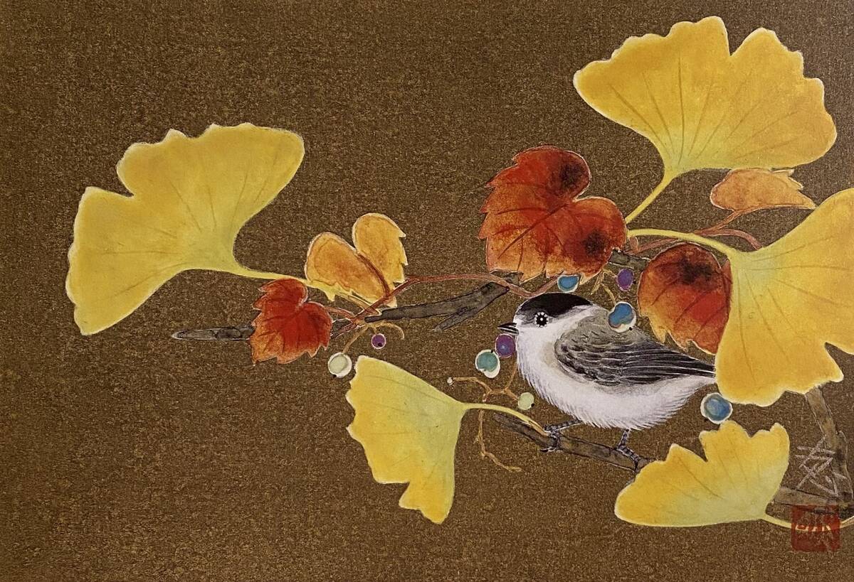 - 堀川えい子、〈黄葉子雀〉、希少画集画、高級新品額・額装付、状態良好、送料無料