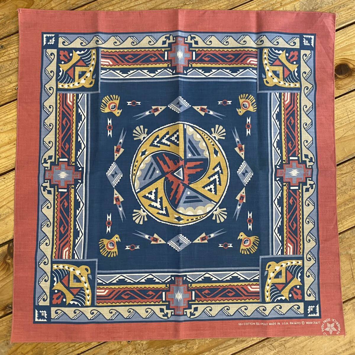 - 送料無料 Vintage ネイティブ柄 バンダナ アメリカ仕入れ 雑貨 ハンカチ ピンク サンダーバード 小物 総柄 ヴィンテージ A1089