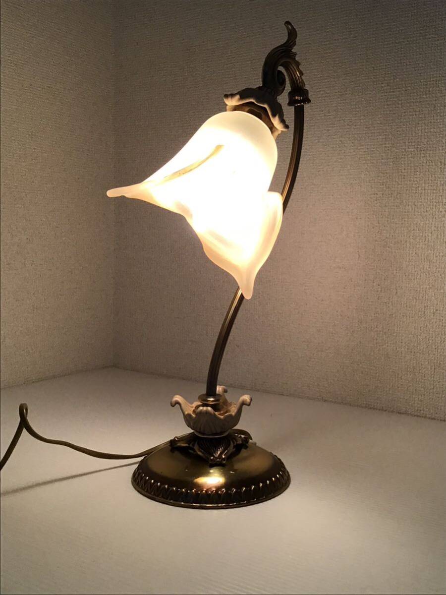 - 重厚感★アンティーク★ テーブルランプ 真鍮? ガラスシェード 花型 CREVAL.S.A. 高42cm 幅23cm 西洋風 間接照明 卓上