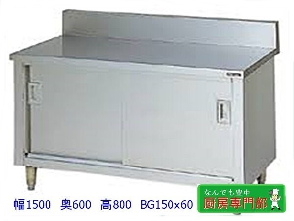 - 【新品/事前確認必要】◆マルゼン バックガード付 キャビネットテーブル BH-156 1500x600x800+150 引違い扉 新品厨房◆cb919