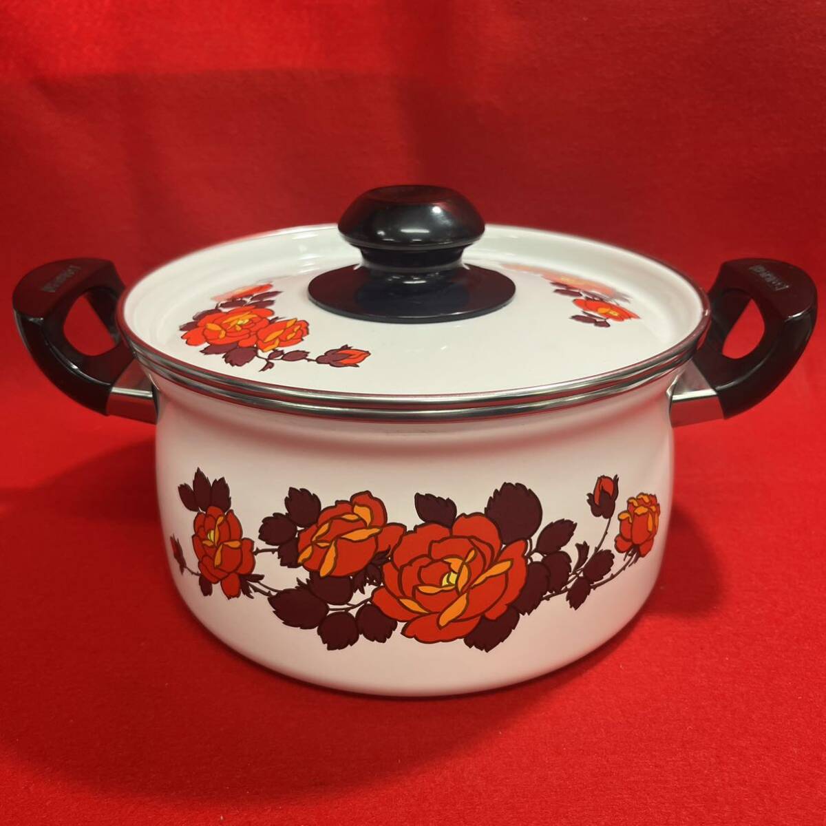 > ☆未使用品☆ ZOJIRUSHI 象印 ホーロー 両手鍋 花柄 昭和レトロ 調理器具 美品 内容量2.9L (05116E