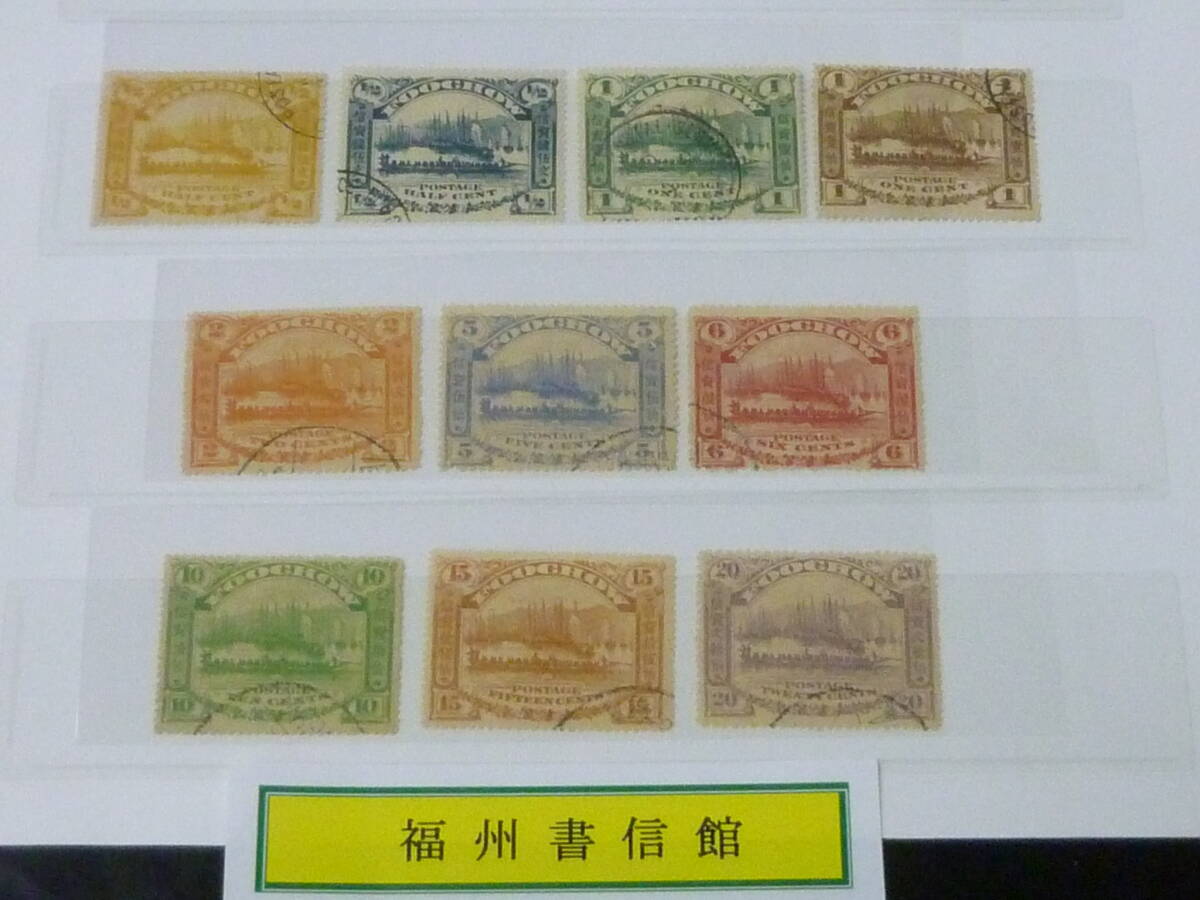 - 24L M №65 旧中国切手 福州書信館 1895年 JPS#LP102-111 普通票 「龍船レースとジャンク」 計10種 使用済