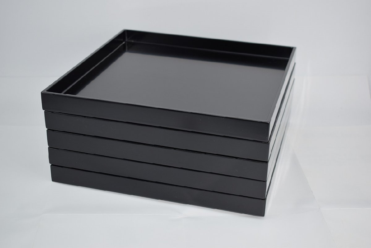 - 茶道具 茶事 懐石 黒塗 折敷 5客 木製 茶道 29-8415