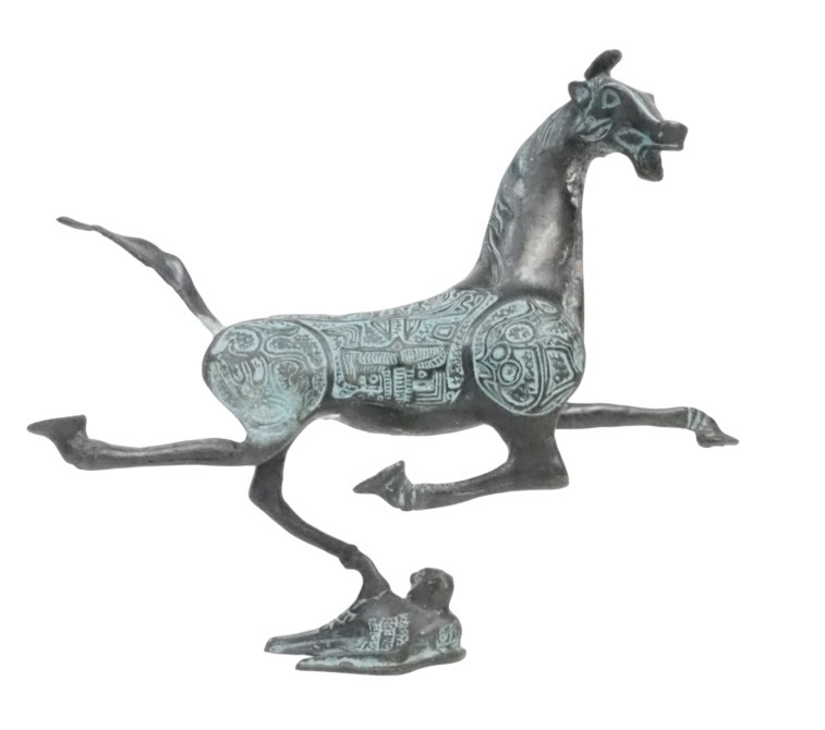 - 置き飾りとして雰囲気を造るのに適した魅力ある逸品!中国古玩 青銅器 飛ぶツバメを踏みつけている馬の像 汗血馬 置物 1980年代 TTH605