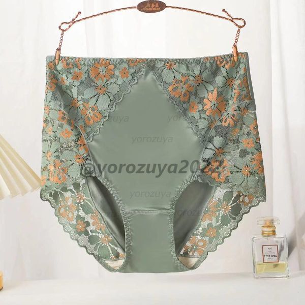 > 121-139-9 フラワー レース 光沢 艶々 パンティー【グリーン,XL程度(F)】レディース 下着 ショーツ 大きいサイズ パンツ ランジェリー.1