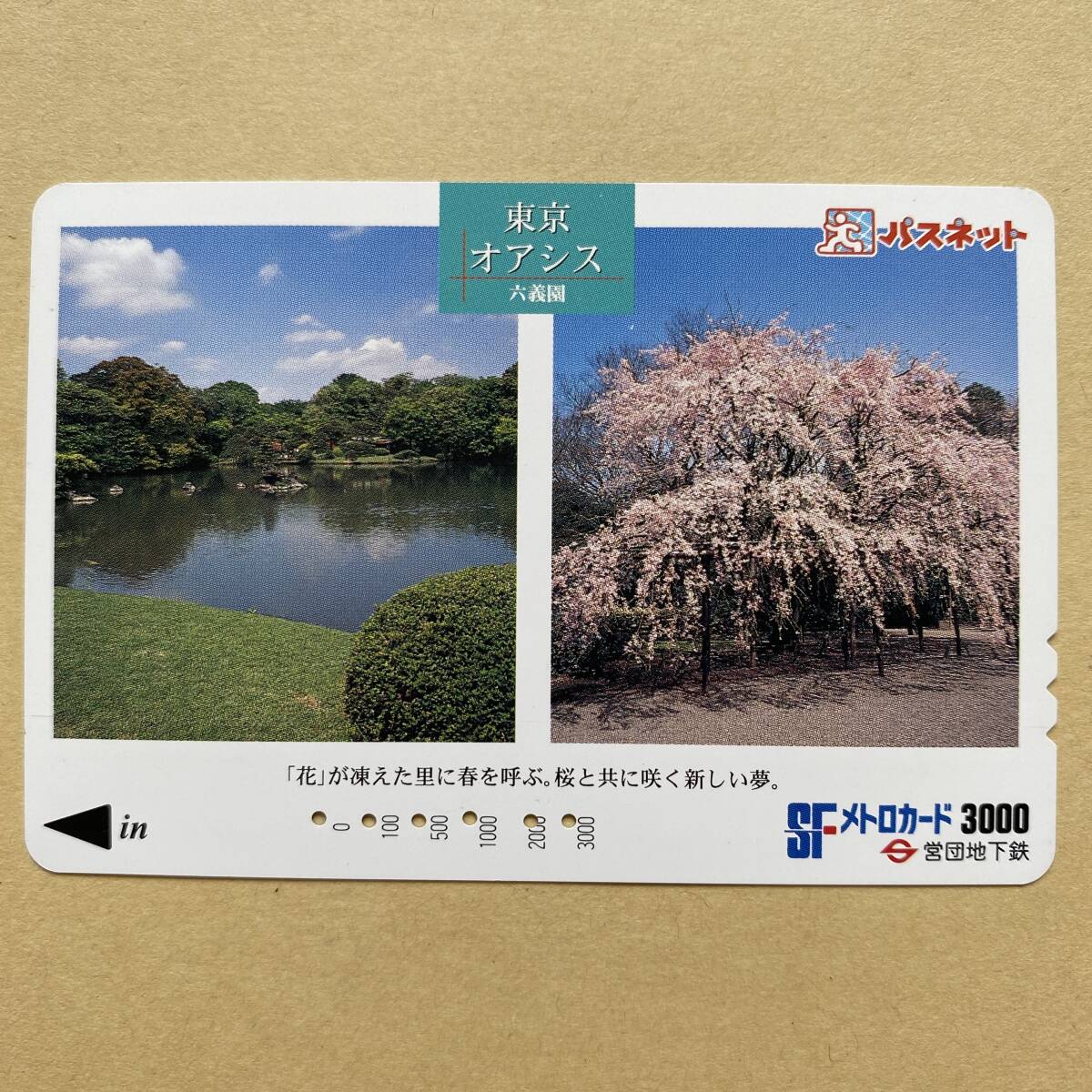 > 【使用済】 パスネット 営団地下鉄 東京メトロ 東京オアシス パスネット 六義園 「花」が凍えた里に春を呼ぶ。桜と共に咲く新しい夢。