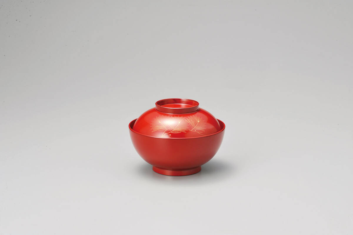- 《只今!20%値下げ中》濱田屋「創作漆器」越前塗 沈金松 雑煮椀 朱 1客 日展作家富田立山作