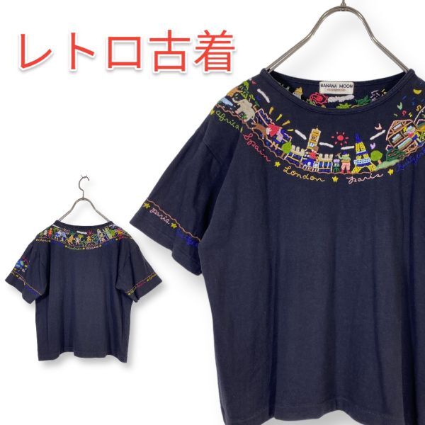 - BANANA MOON バナナムーン 半袖Tシャツ 刺繍 黒 ブラック ビンテージ シングルステッチ 匿名配送