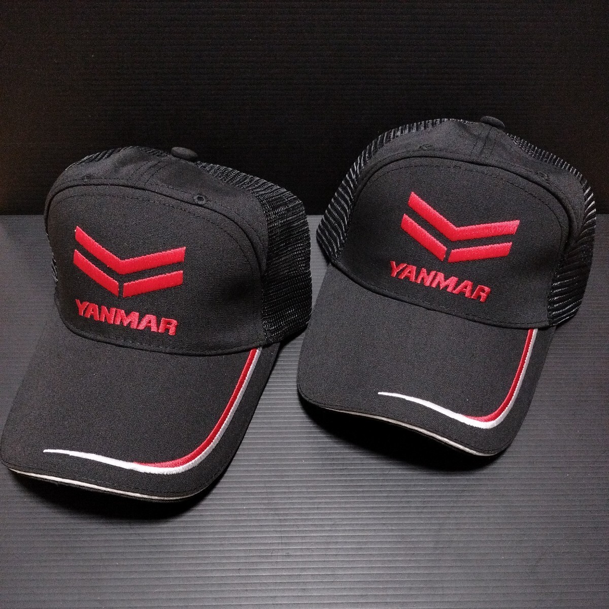 - ● ヤンマー「YANMAR メッシュ キャップ 2個」刺繍 帽子 黒系 つばライン ロゴ