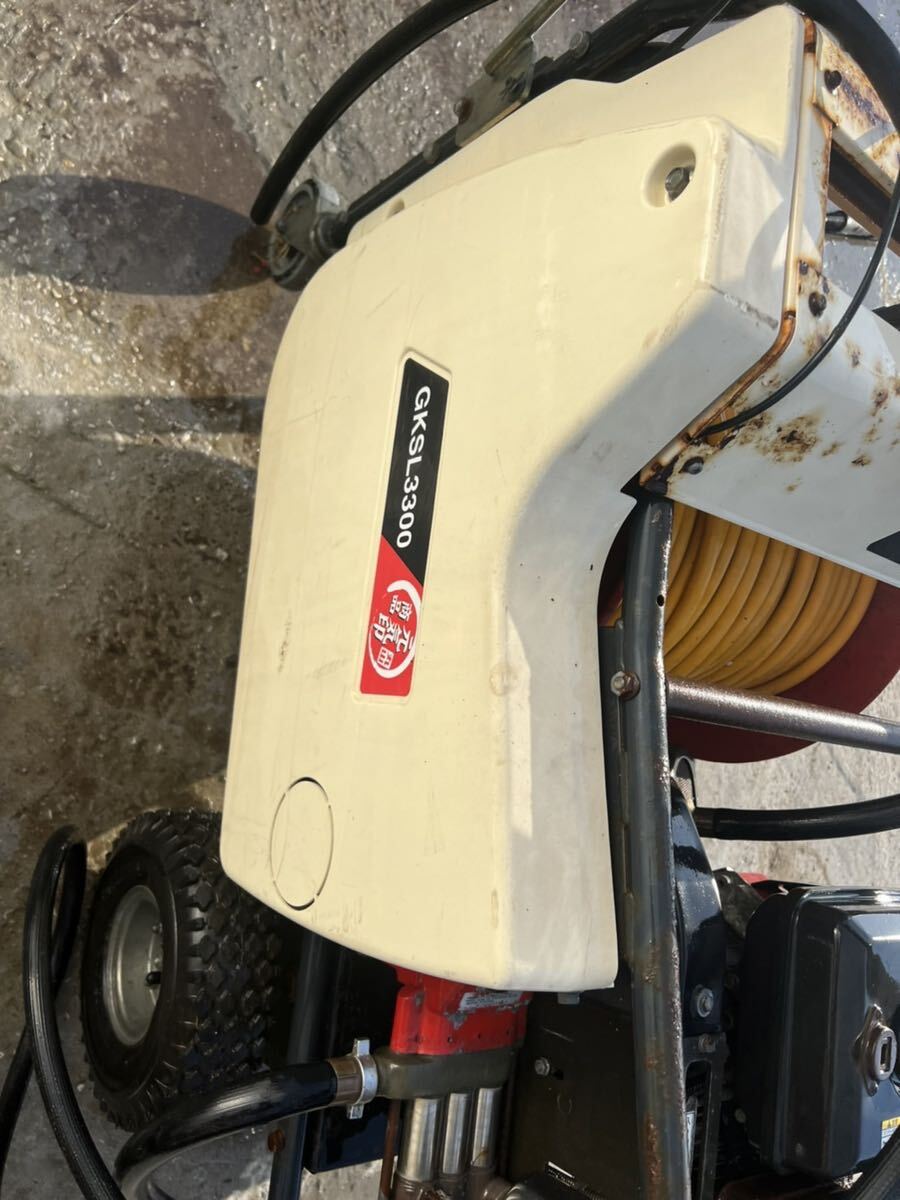 > 鳥取県発丸山 自走 ラジコン 動噴 GKSL3300R1-M 元気印 4.2馬力 自動 巻取り ホース 100m 動力 噴霧 消毒 中古品