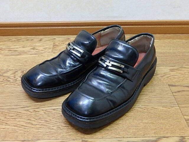 > 80s405kt タケオキクチ 25.5cm 黒 革靴 ローファー メンズ ビジネスシューズ スリッポン 男性用 靴 ジャンク(北海道・沖縄・離島発送不可)