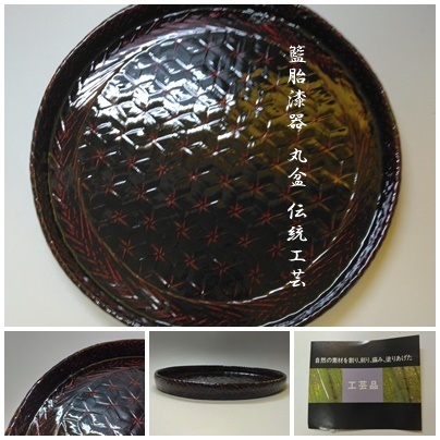 - 【T-186】籃胎漆器 丸盆 直径約31cm 伝統工芸品 未使用