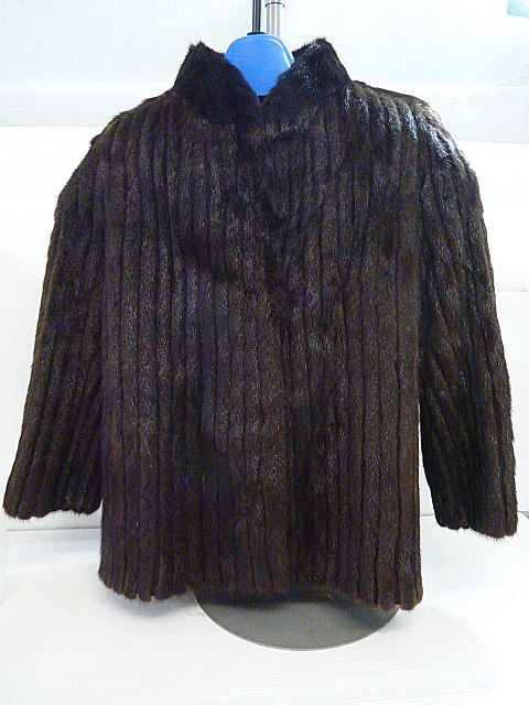 > (t497C) SAGAMINK サガミンク 毛皮 ハーフ コート リアルファー 11号 着丈約69cm 濃いブラウン系 銀サガ レディース ファーコート