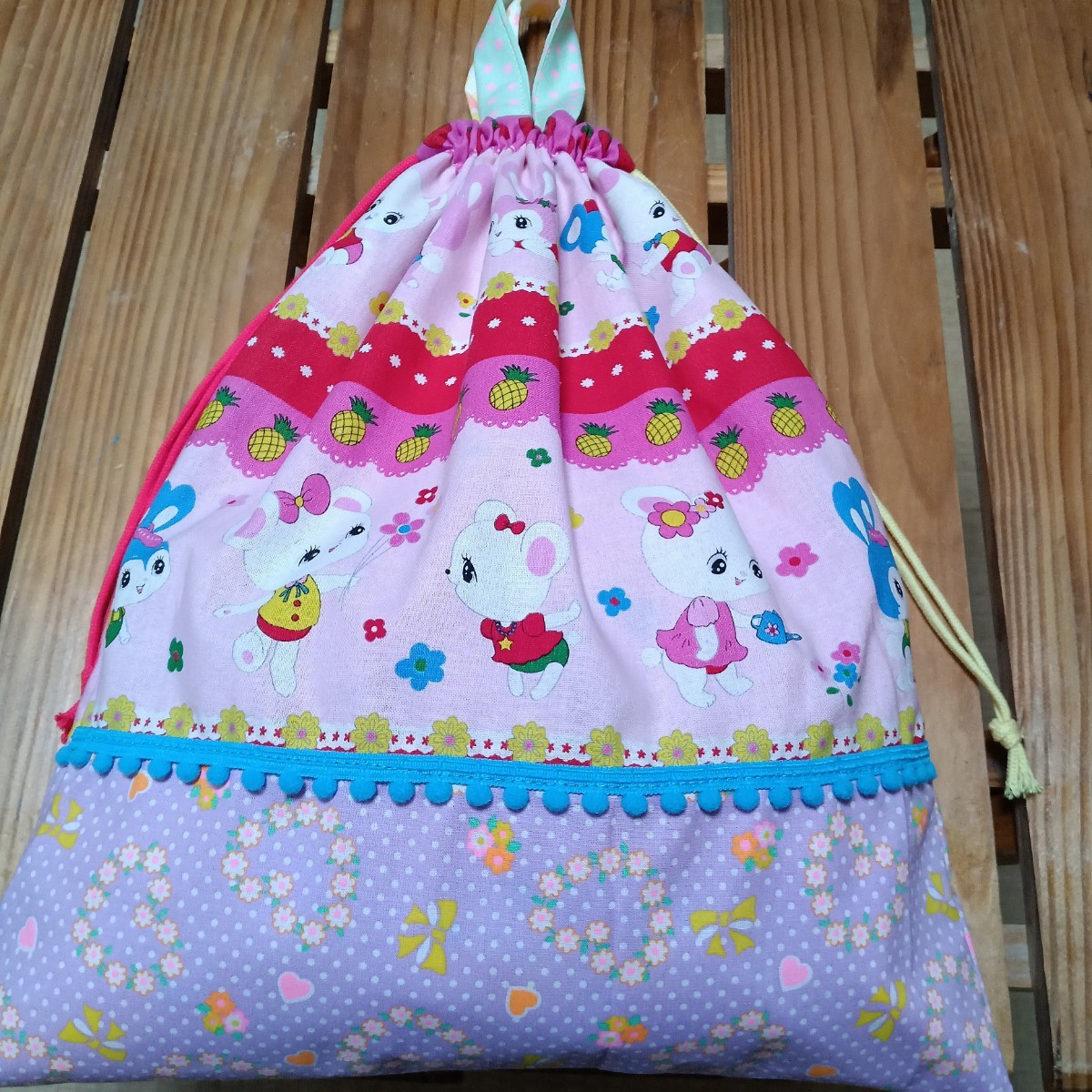 - 入園入学準備 ハニーチューン 体育着袋 お着替え袋 巾着袋 女の子 体操服袋 ハンドメイド 体操着袋 体操服入れ ピンクス pinks