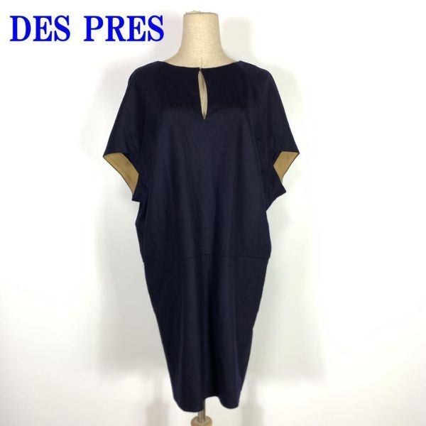 - DES PRES デプレ 半袖デザインワンピースネイビーバイカラー ポケット有 ドロップショルダー 1 C195