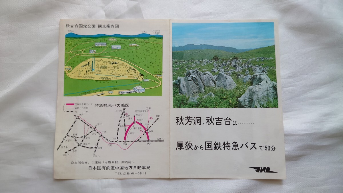 - ▼国鉄バス・中国地方自動車局▼秋芳洞・秋吉台は、厚狭から国鉄特急バスで50分▼パンフレット