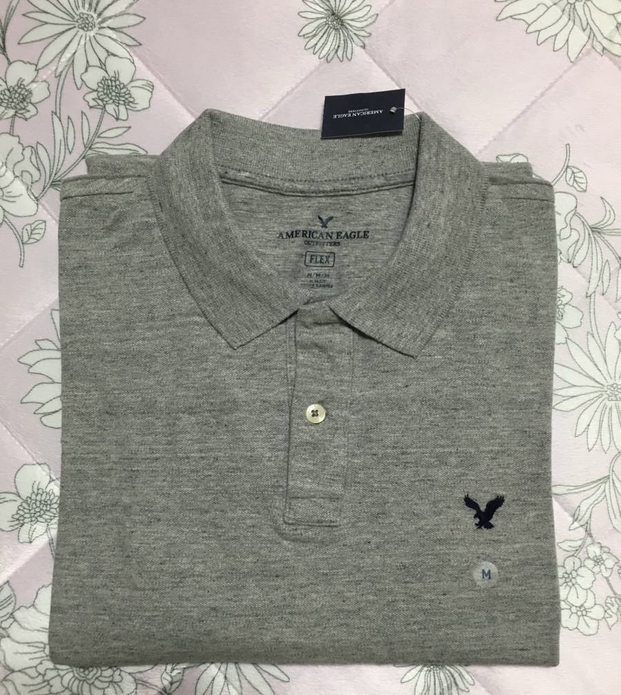 - セール! 残り僅か! 正規品 本物 新品 アメリカンイーグル フレックス ピケ 鹿の子 ポロシャツ AMERICAN EAGLE 上品 大人の グレー M ( L