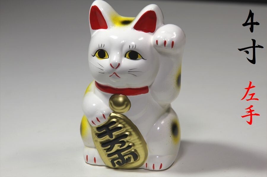 - 国産 ■ 開運 招き猫 ■白 4寸■左手 高さ 約 12cm
