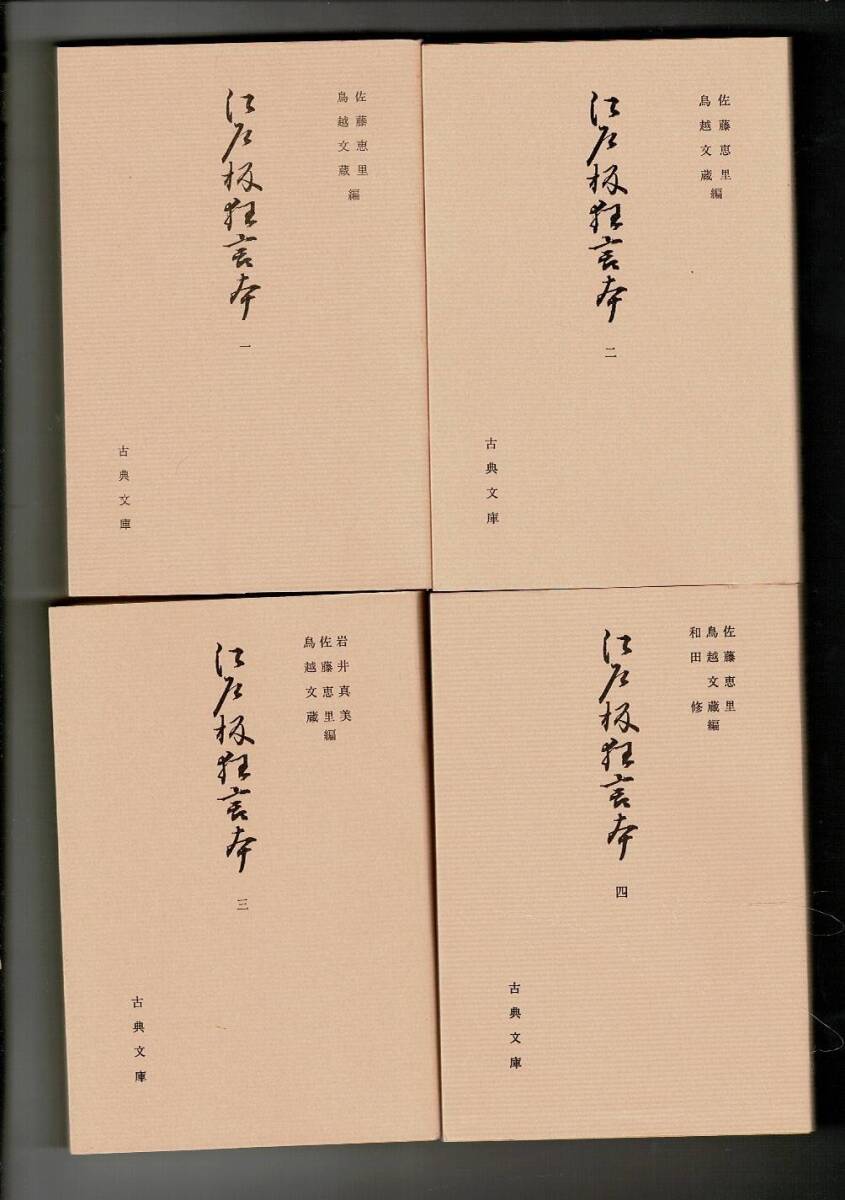 - *「江戸板狂言本 1~4 全4冊<古典文庫 第439、488、532、574冊>」佐藤恵里, 鳥越文蔵 編 、17cm 昭和58~平成6年 RG124SA