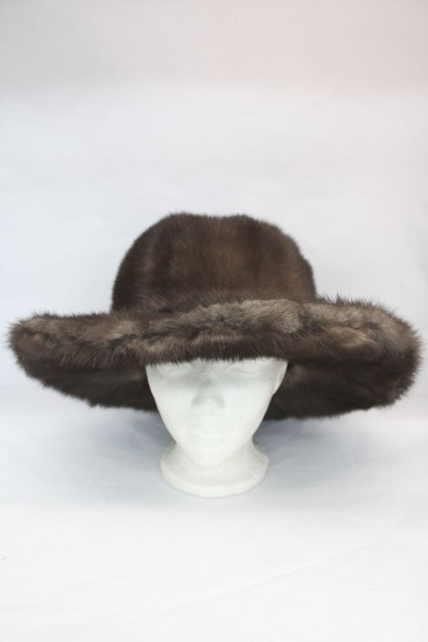 - カスタムメイド ルテーシャ&ダーク・ミンク毛皮ファー・ハット 帽子 広いブリム