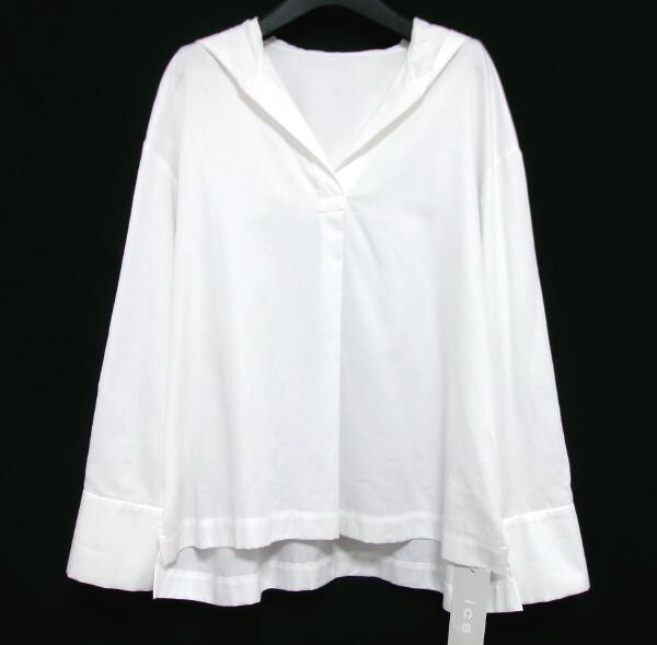 - 新品★ICB アイシービー★洗える コットンサテン プルオーバーブラウス★ゆったりシルエット フード★Mサイズ ホワイト