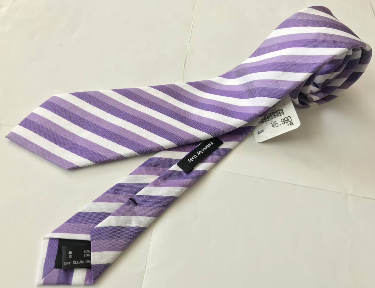 - 新品6,589円 MAJI マジ★イタリア製生地★スリム お洒落ネクタイ★日本製★ラベンダー系★レジメンタル★シルク リネン★スーツ ジャケット
