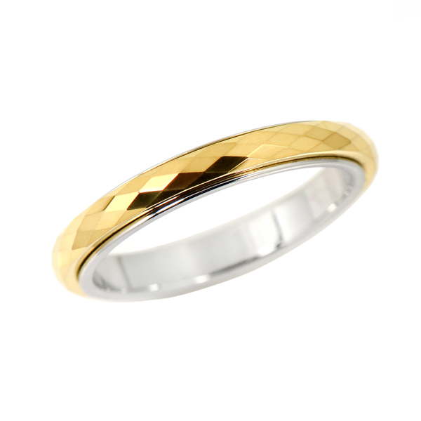 - ★人気★肌に優しい★金属アレルギー&温泉&海水浴OK★スピナー回転★タングステン&ステンレスリング★シルバー&ゴールドダイヤ柄カット★