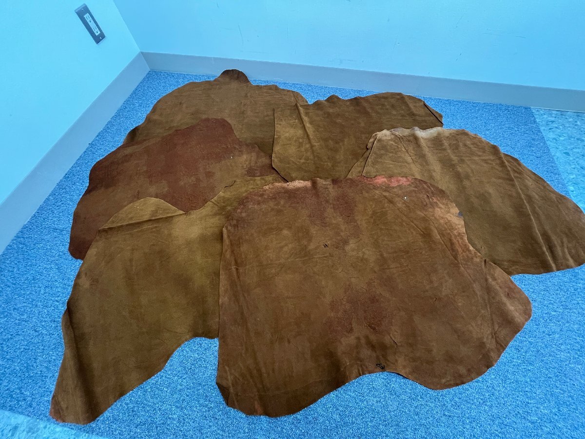 - ①レザークラフト革 牛革 本革 レザー 素材 ハンドメイド 茶色 端切 ハギレ 材料 6枚