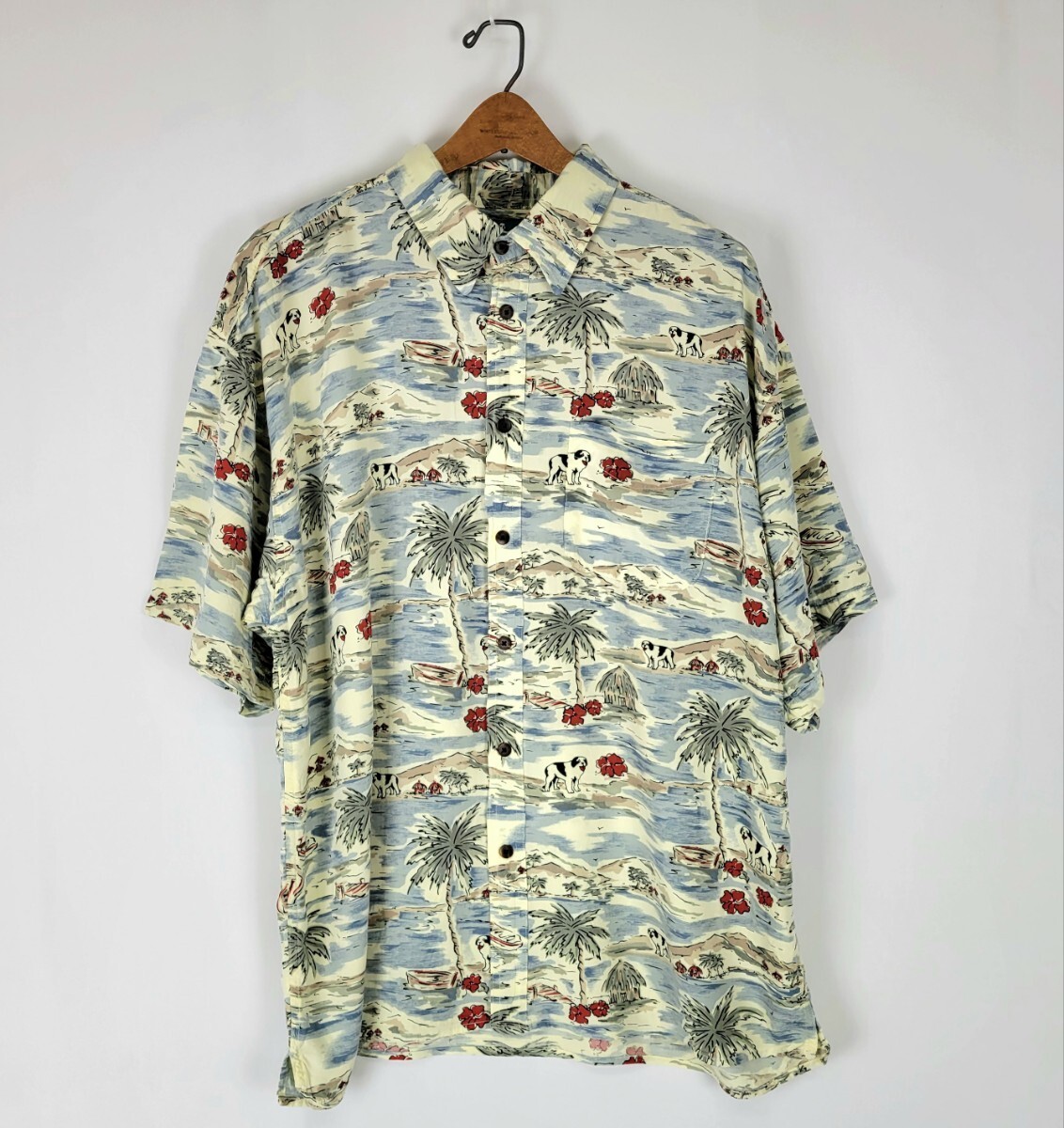 > 美品 90s BIGDOG レーヨンアロハシャツ XL ボックスシルエット レーヨンシャツ 90年代 ビンテージ ビッグドッグ 犬柄