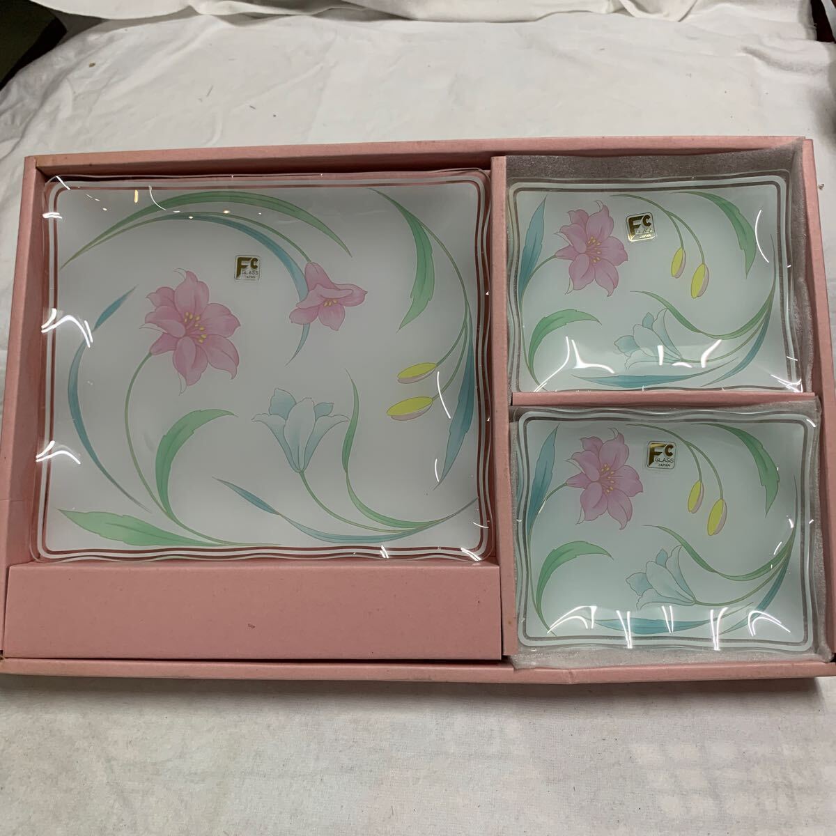 - ファンシークラフトグラス 角皿 大皿 小皿 花柄 プレート