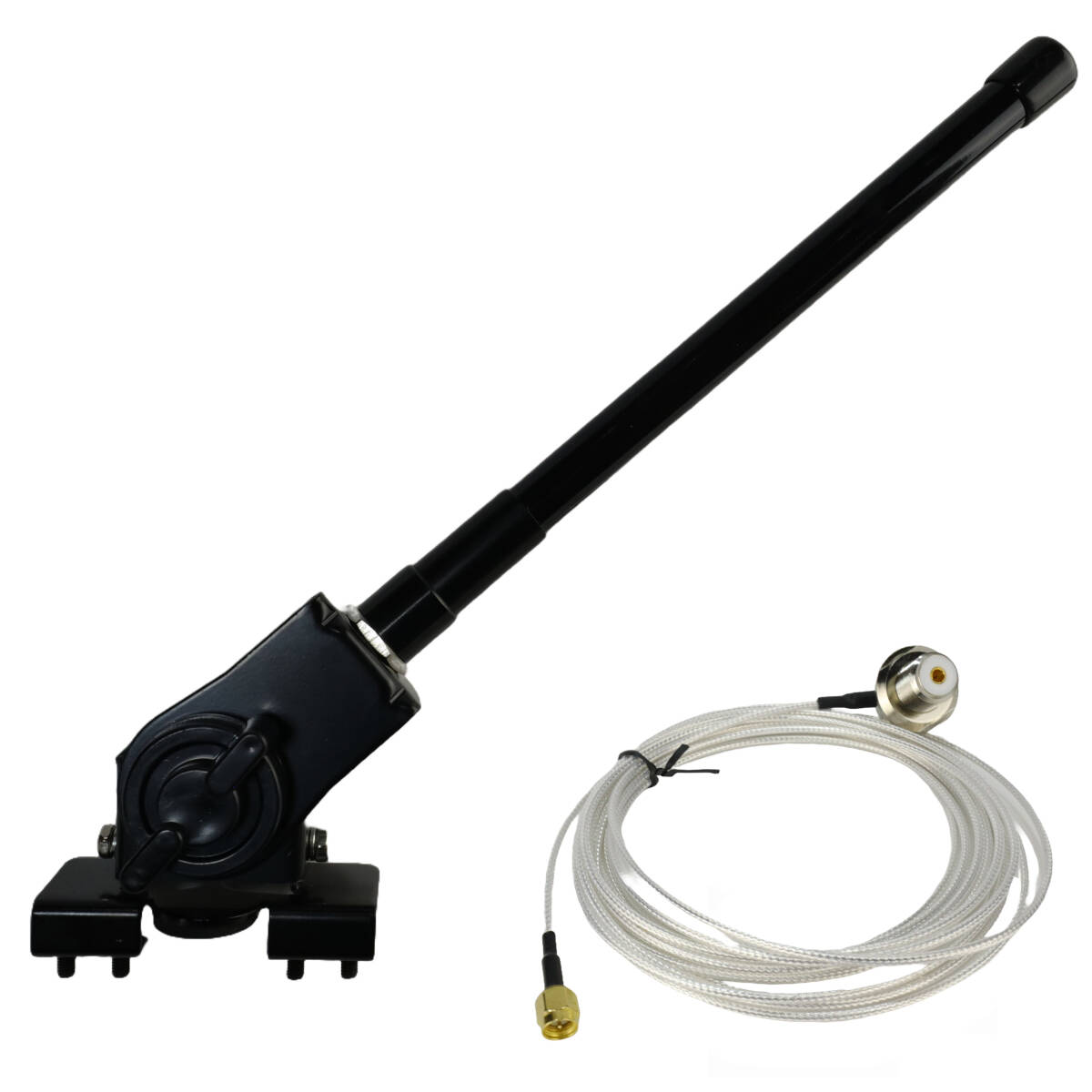 - 送料無料 22cmデュアルバンドアンテナ(黒) 2軸可動式ハッチバック/トランクアンテナ基台 SC316(1.5D-2V相当)同軸ケーブル5m MJL-SMA接栓