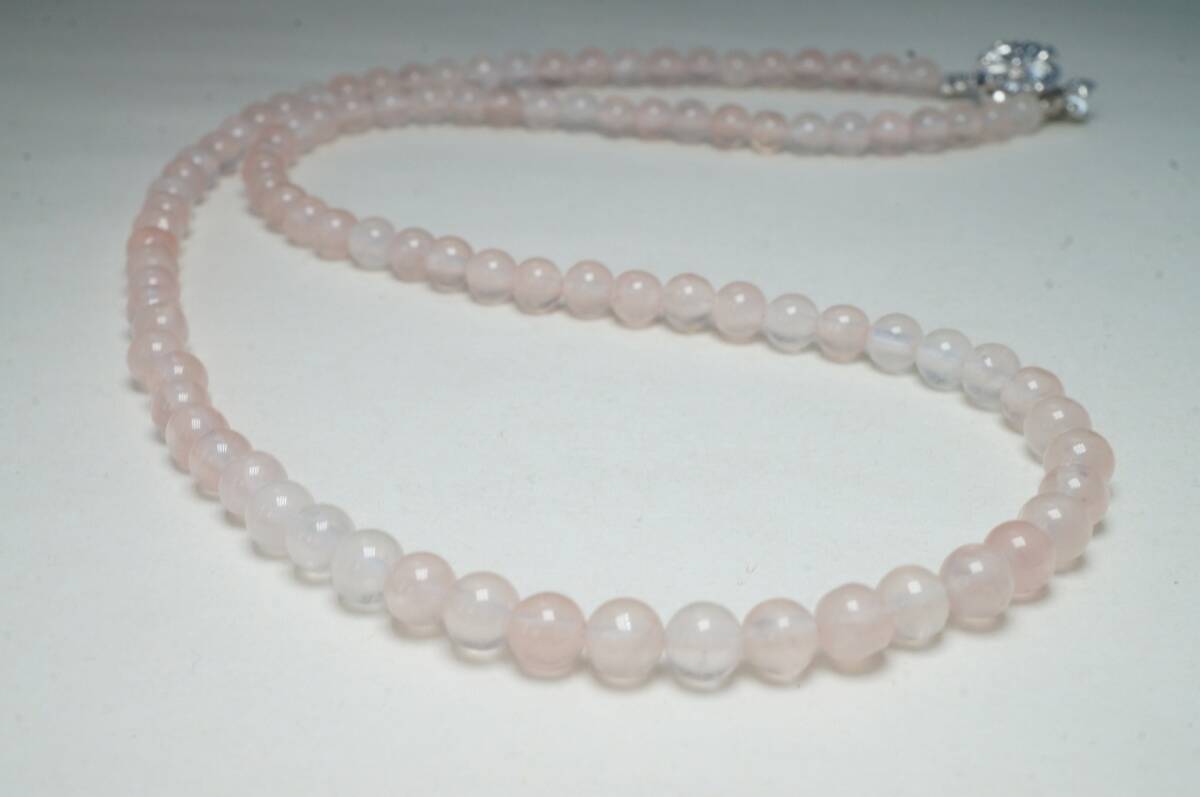 > 【即決特別価格!】甲府の一級研磨士が施した匠の逸品!天然ローズクォーツ(紅水晶)ネックレス4.4mm玉/全長43cm