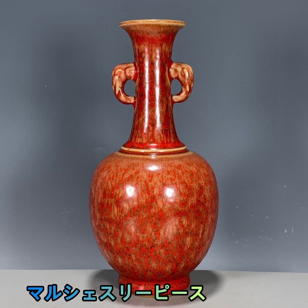 - 超美品! 花瓶 紅釉 単色釉 薬花瓶 胆瓶 賞瓶 観賞 装飾 磁器 中国陶磁 中国美術 コレクション 還流Y38317