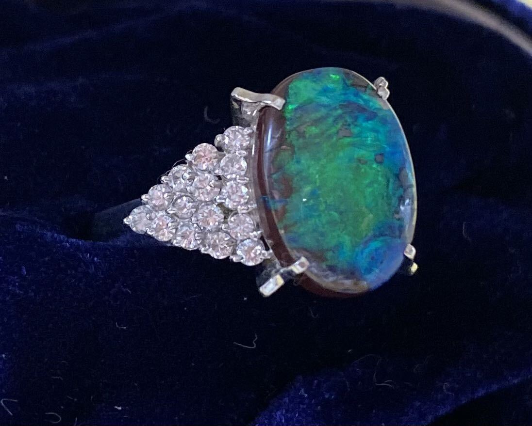 - 天然オパール 5.85ct ダイヤモンド 0.60ct プラチナ 指輪 リング 色石 オパール