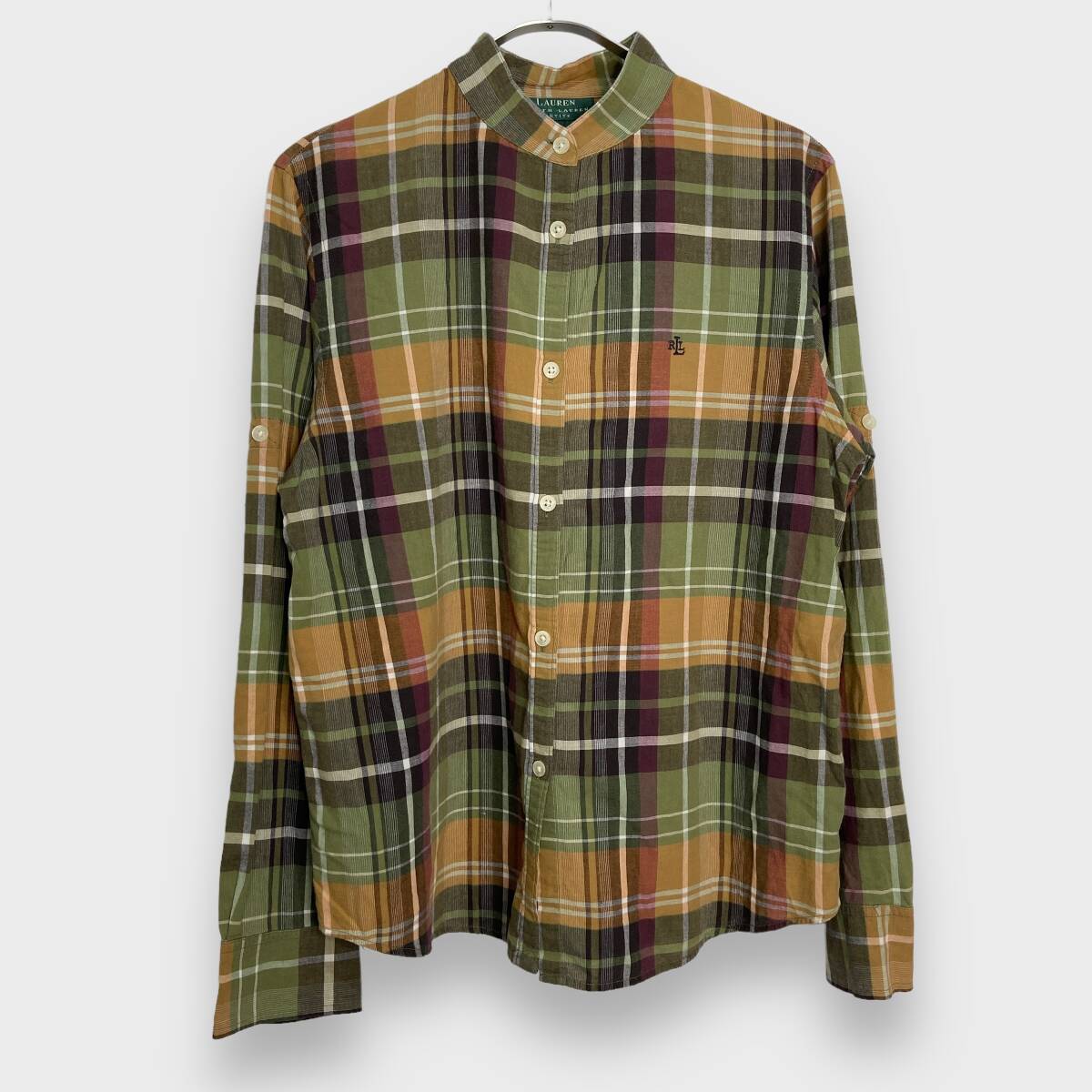 - 送料無料☆LAUREN RALPH LAUREN☆PETITE☆ラルフローレン☆バンドカラーシャツ☆チェック柄☆インドコットン☆レディースM☆F24M