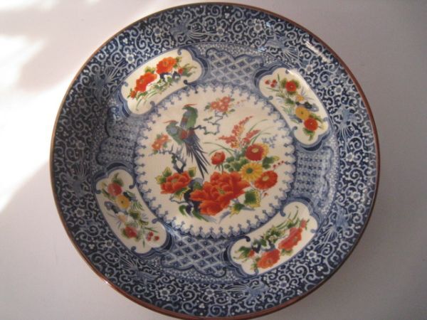- 陶器の大皿 飾り皿 勢州 キジと花 絵皿 飾り オブジェ 陶器/21N10.19-65
