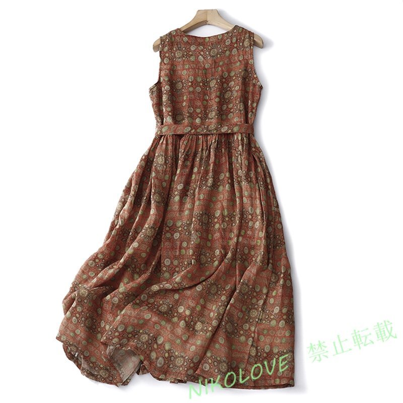 - 新品カジュアル 体型カバー レディース ドット柄く Vネック袖なしロングワンピース M~2XL オレンジ色 LH105