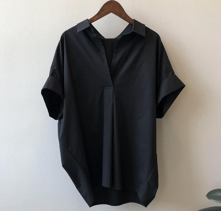 - 夏新作/カジュアル シャツ ブラウス Vネック 半袖 シフォン ブラウス ドルマン袖 夏 きれいめ 通勤 大人 着痩せ お洒落 トップス /ブラック