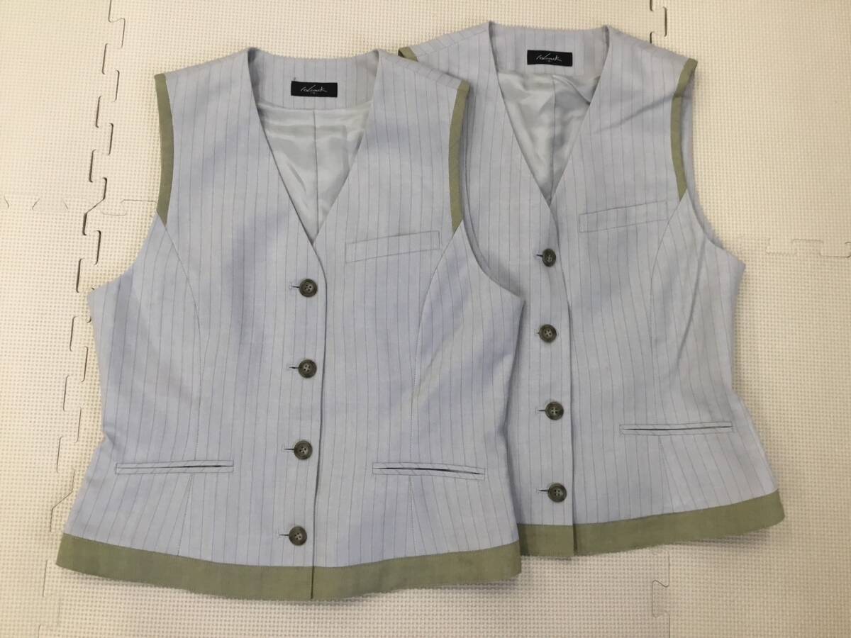 - V5014-610H 新品【HINUCK】オフィスウェア ベスト 9号 2枚/同一商品/グリーン系xストライプ/ハイナック/事務服/OL/受付/制服/コスプレ