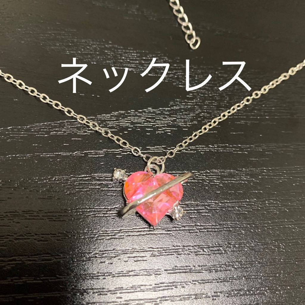 - 夢可愛い 桜ピンク ハート 惑星 ネックレス ペンダント シルバー