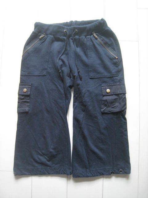 > 即決送料無料/七分丈 クロップド パンツ ウェストゴム紐あり 綿100%/スウェットパンツ/黒/部屋着 ホームウェア くつろぎ ヨガ フィットネス