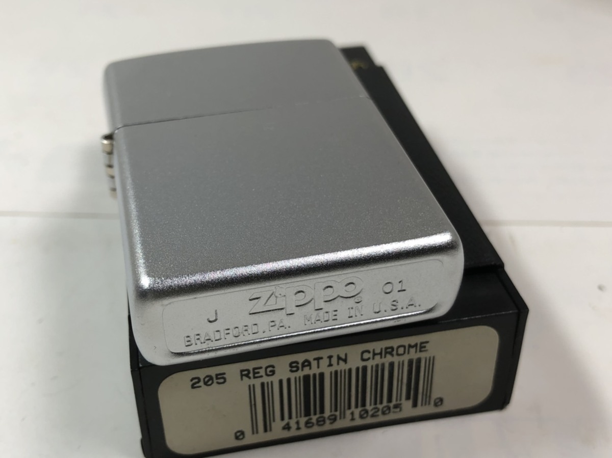 - 2001 Zippo サテンクローム・プレーン(無地)#205旧プラケース箱/新品