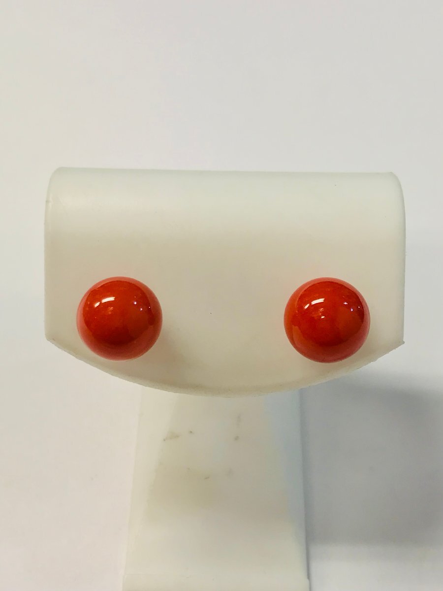 > K18YG イエローゴールド 珊瑚 サンゴ 丸玉ピアス 8.0mm qoj.YPO12