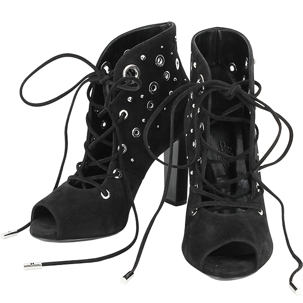 - エルメス ショートブーツ 23.5cm レースアップ シェーブル ベロア h-c135