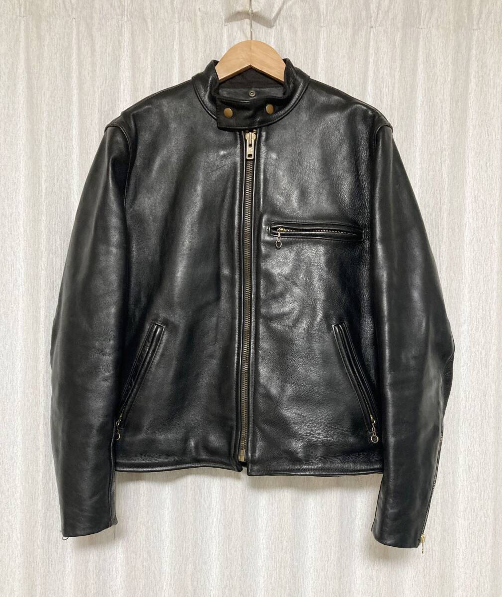 > サイズ42☆[VANSON] TYPE:B シングルライダース バイカーレザージャケット 42 牛革 USA製 ライナー無 ブラック バンソン