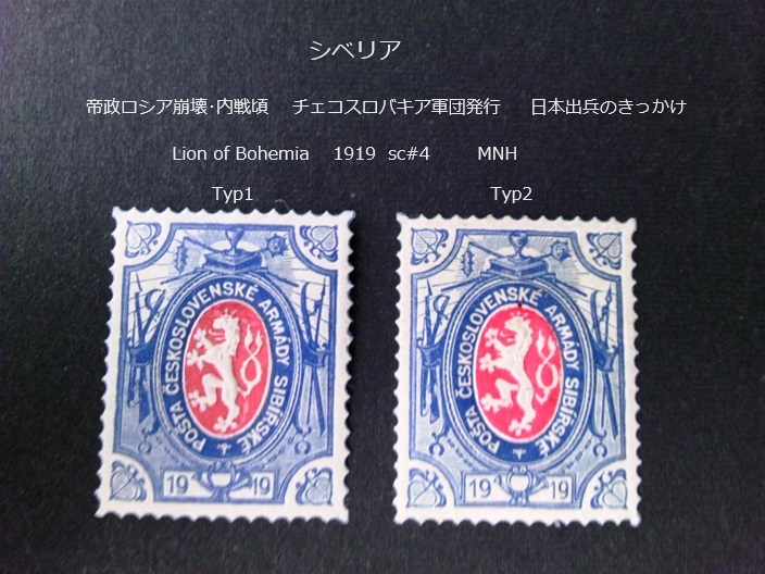 - シベリア 帝政ロシア崩壊・内戦頃 チェコ軍団発行 1919 sc#4 Typ1,2