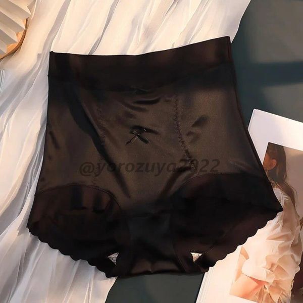 - 117-85-8 ツヤツヤ 光沢 アイスシルク ハイウエスト ショーツ【ブラック,XLサイズ】レディース 女性 セクシー 下着 パンツ ランジェリー.1
