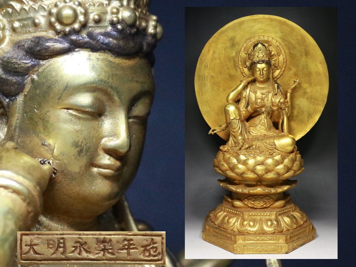 - ■古銅■鍍金仏・如意輪観音坐仏像・高さ39㌢・大明永楽年施・f2102h
