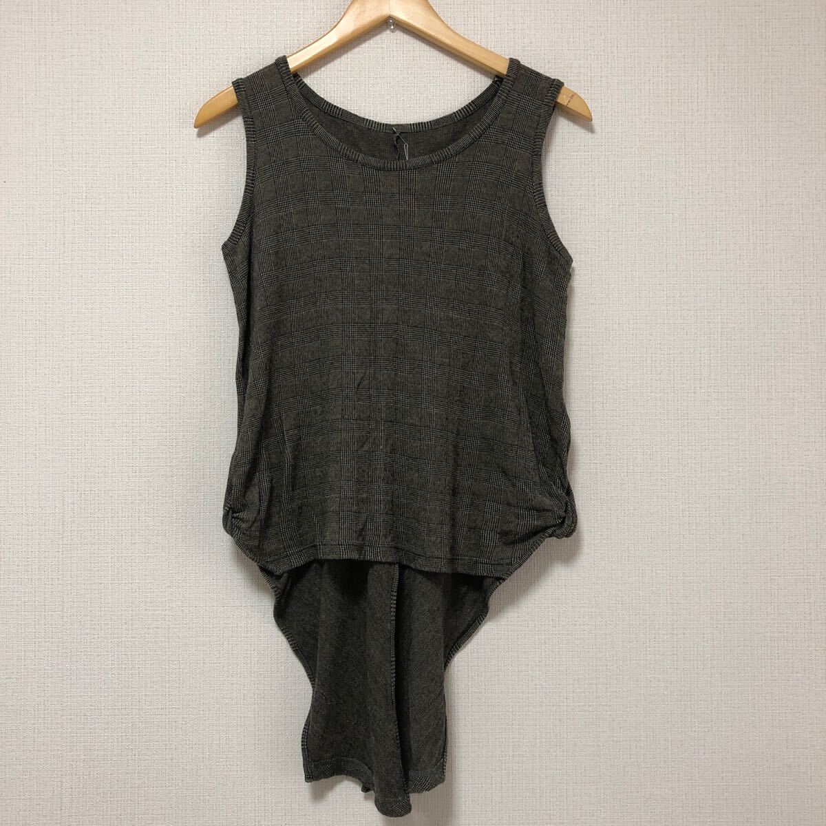 - (k) Yohji Yamamoto +NOIR ヨウジヤマモト 燕尾 変形カットソー グレー ノースリーブ トップス グレンチェック サイズ2 コットン