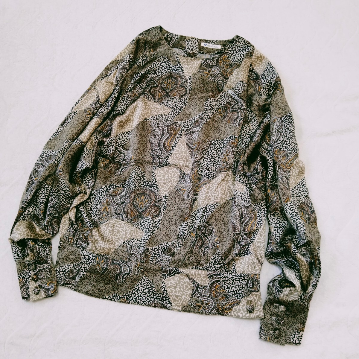 > ville d'azur ビルダジュール*シルク100%*長袖ブラウス*総柄*絹*くるみボタン*ペイズリー*カットソー*プルオーバー*イタリア製生地*